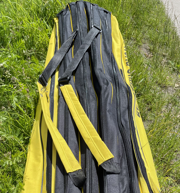 Es kommt in den Farben schwarz/gelb daher und integriert sich somit optimal in mein restliches Tackle. Das verwendete Nylonmaterial ist besonders reißfest und wasserabweisend.