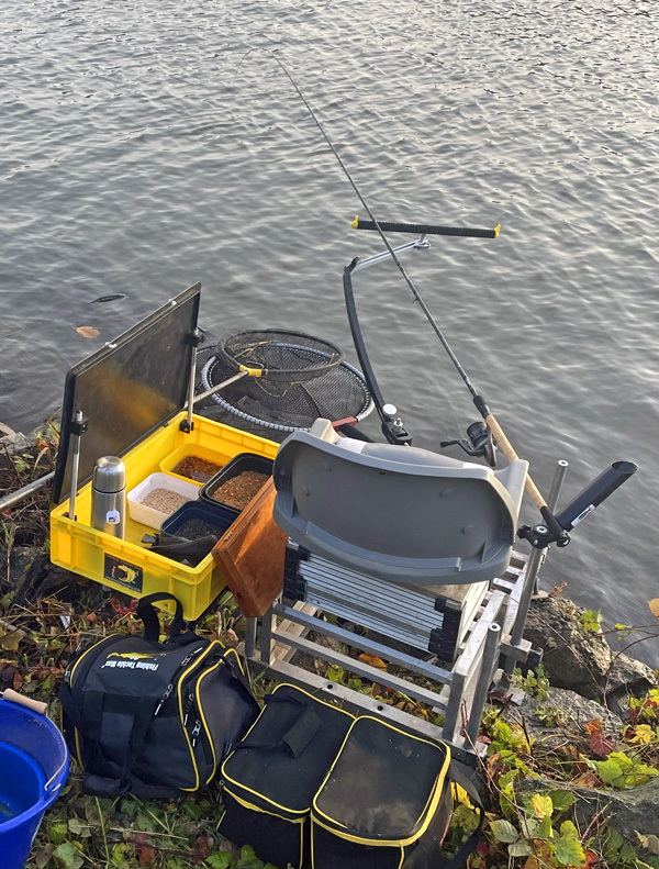 Genau das richtige Tackle für die Winterrotaugen. Die filigrane Rute hat eine perfekte Länge, um die Fische von den Steinkanten im Uferbereich fernzuhalten. Die Rollengröße, zusammen mit der fein justierbaren Bremse, ist ideal für ein schnelles Fischen mit kleinen, wie auch mit größeren schweren Körben. Durch die Schleusentätigkeit im Kanal muss man sehr flexibel sein und immer wieder die Gewichtsklasse sowie Korbgröße wechseln.