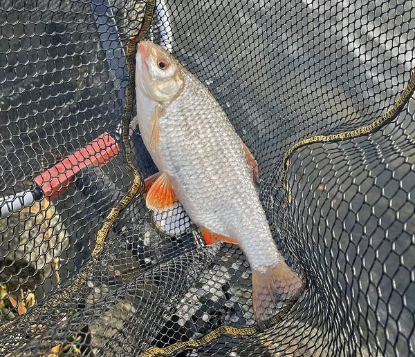 Wie man sieht waren sehr schöne Rotaugen dabei. Ein großer gummierter und somit sehr fischschonender Kescherkopf ist sehr hilfreich, um die Fische schnell zu landen und abzuhaken.
