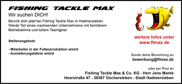 oder per Post an: Fishing Tackle Max GmbH & Co. KG, z. H. Jens Marek, Heerstr. 47, 37387 Hadmersleben