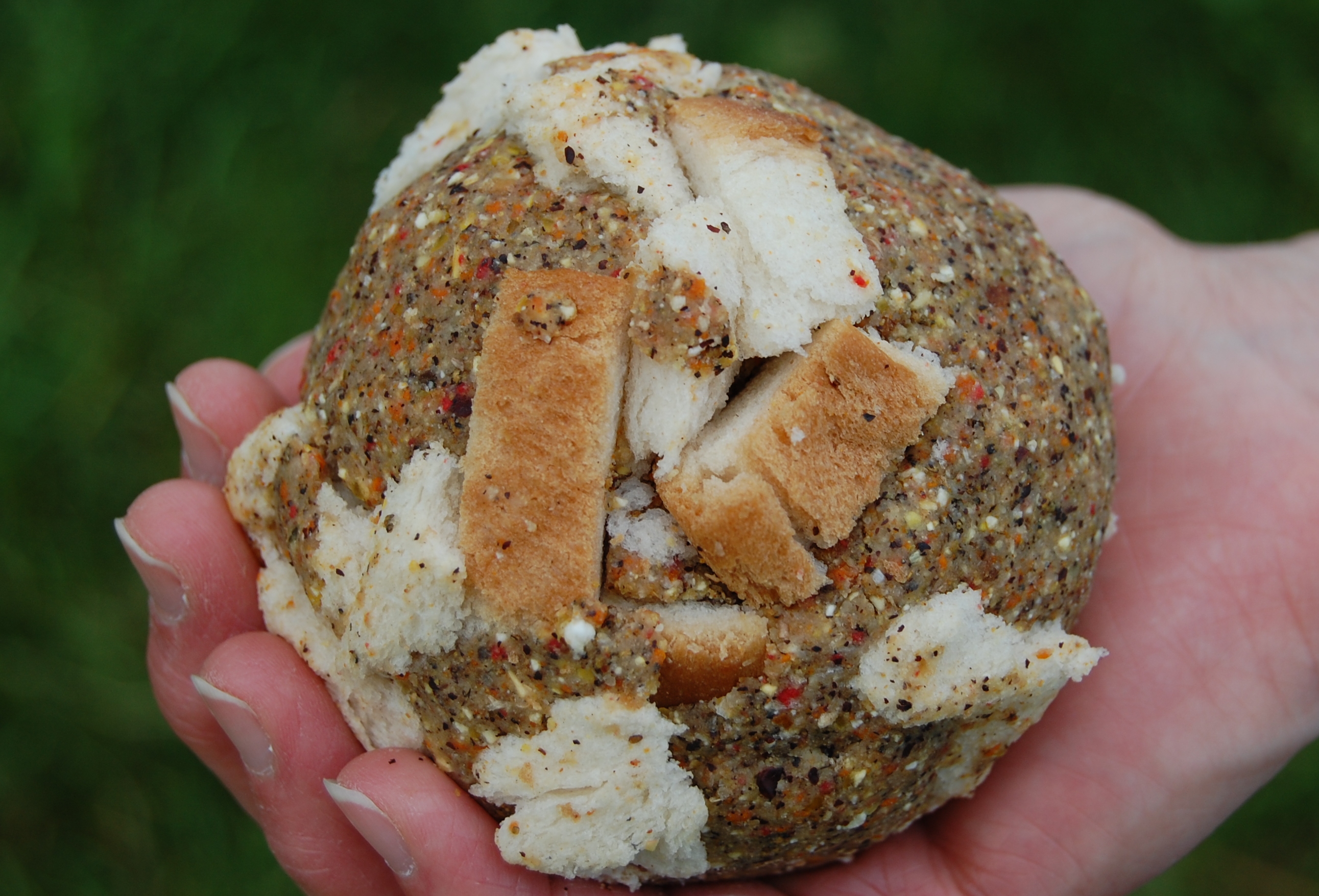 4. Maden, Caster und trockene Toastbrotstücke zugeben, Futterballen kneten und auswerfen.
