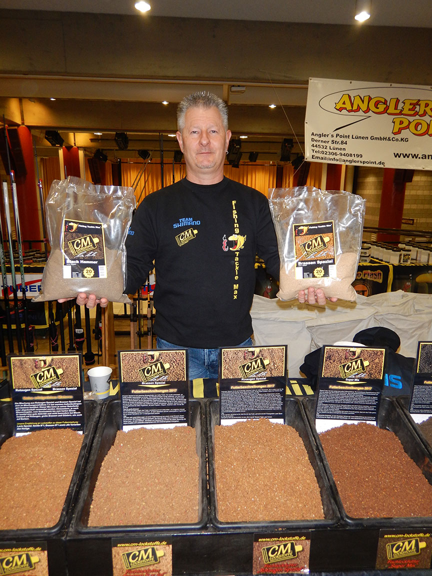 Selbstverständlich war auch diesmal wieder Fishing Tackle Max vertreten. Gemeinsam mit der Firma Anglers Point aus Lünen wurden die Produkte aus dem FTM Programm angeboten. Hauptaugenmerk lag dabei in diesem Jahr auf dem Futter und den Lockstoffen aus dem CM Programm von Claus Müller, welches seit letztem Jahr von FTM vertrieben wird. Mit Claus Müller und Johannes Böhm waren zwei der besten deutschen Stippangler am Stand vertreten und gaben den zahlreichen interessierten Besucher so manchen hilfreichen Tipp in Bezug auf erfolgreiches Stipp-, Match- und Feederangeln. Als Fazit lässt sich sagen: Die Messe war wiederum ein voller Erfolg.