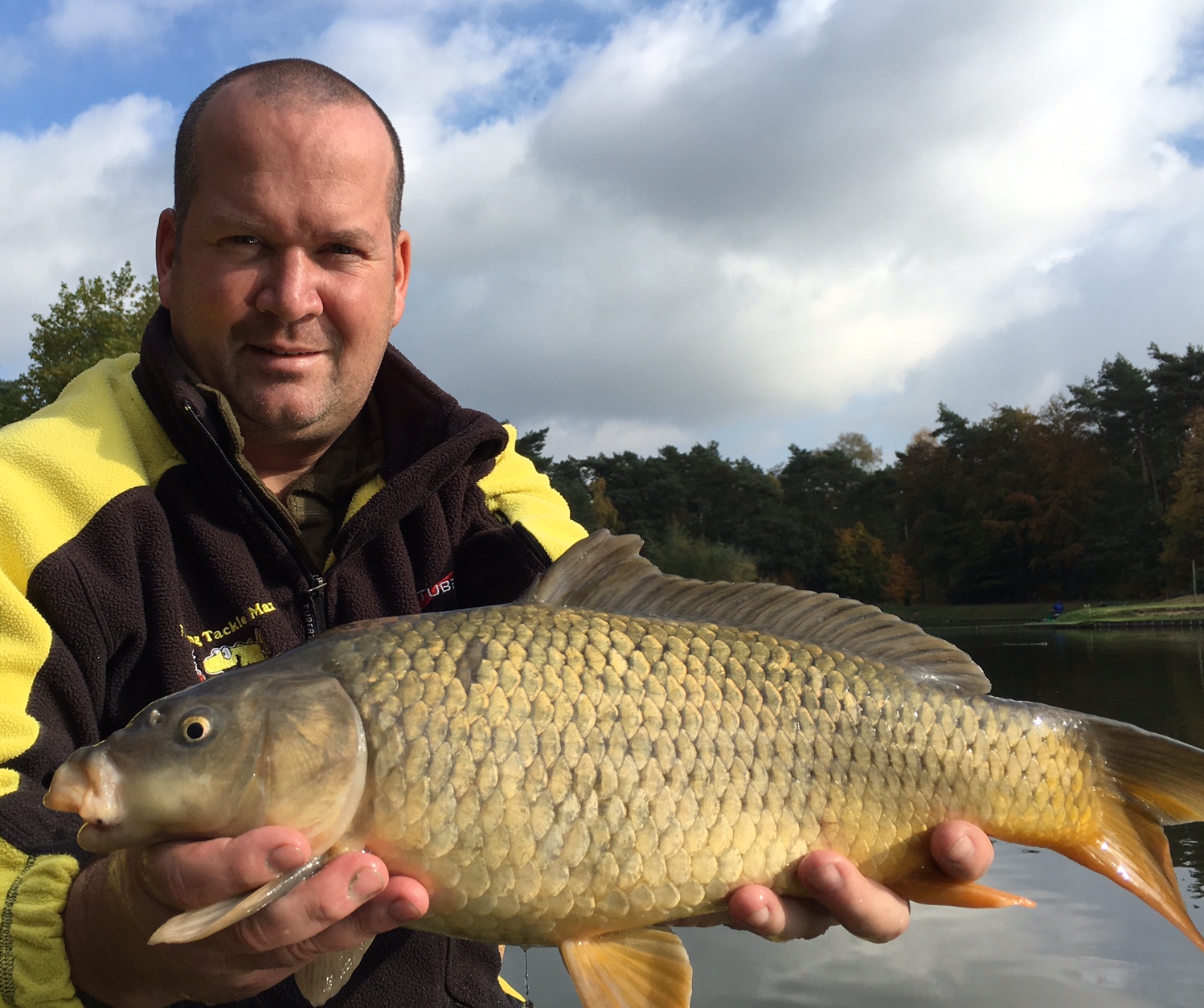 So fängt der Tag gut an und nach 2 Stunden bzw. einigen gefangenen Brassen ändern wir unsere Angelmethode und steigen auf`s Method-Feedern um. Als Futter haben Matthias und ich eine Mischung aus je 1 Teil Method Master Green, Method Basic Mix und Pellet Super Crush Black gewählt, übrigens alles Bestandteile der Next Generation Method Serie, in der Hoffnung, aufgrund der fischigen Note des Futters den ein oder anderen kapitalen Karpfen überlisten zu können. Das Futter wird leicht angefeuchtet, bis ein gewisser Klebe-Effekt eintritt. Ich lasse es ein paar Minuten ziehen und gebe es dann durchs Sieb, damit in dem Futter keine großen Futterklumpen vorhanden sind. Der Mischung füge ich als Kontrast noch ein paar Virus Micro Pellets in 1mm hinzu, die nicht extra angefeuchtet werden müssen. Als Köder verwende ich zunächst die Next Generation Betain-Boilies und ich beginne mit den orangefarbenen Scopex-Boilies. Matthias setzt auf die neuen Bread Punch Boilies (Mini Brot Boilies) und beginnt mit den gelben Leckerbissen in der Geschmacksrichtung Pineapple.