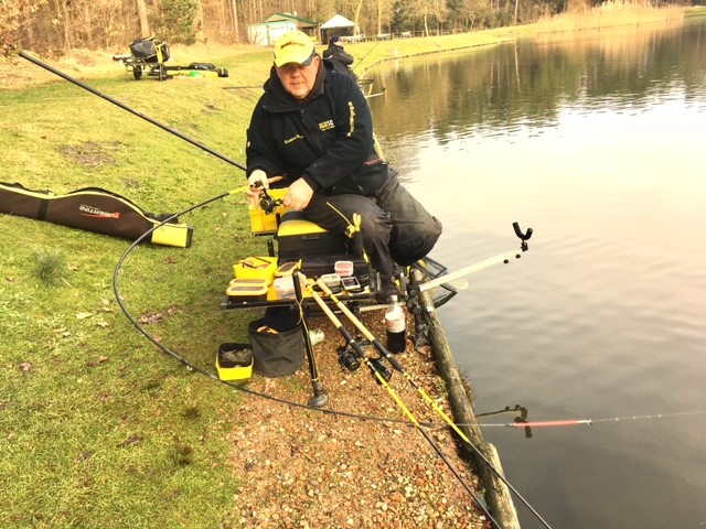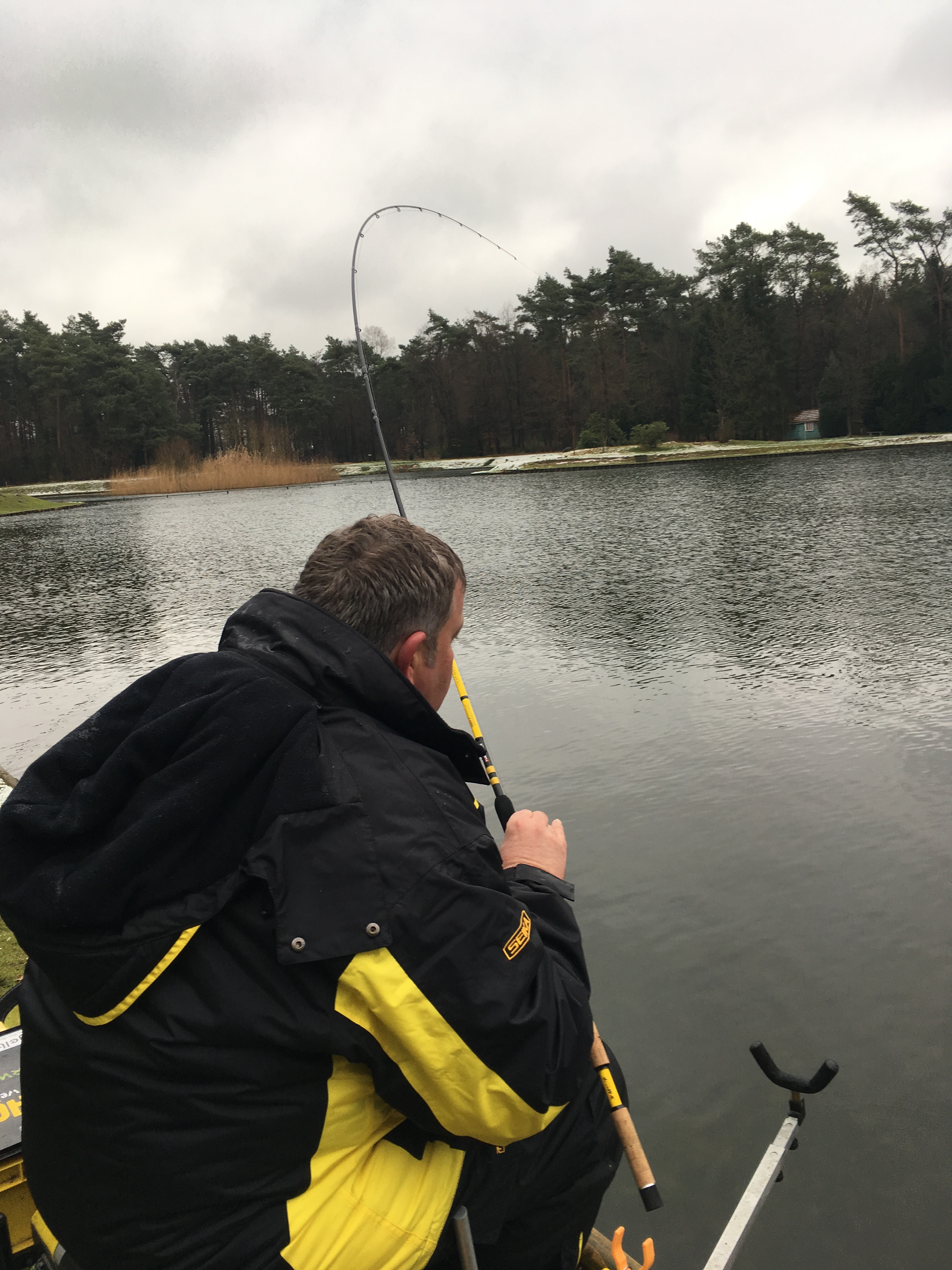 Ich nehme also wieder die Gelegenheit wahr, mit Matthias Weigang, einem der erfolgreichsten und vor allem innovativsten Feederangler der letzten Jahre an den See zu gehen und meine beiden neu erworbenen Tubertini Light Feeder II zu testen. Um es vorwegzunehmen, die Vorschusslorbeeren über diese Rute waren nicht übertrieben, denn sie ist ein weiteres Sahnestück, welches in Zusammenarbeit mit Matthias und der italienischen Edelmarke Tubertini entstanden ist. In gewohnt kompromissloser Manier sind in den Bereichen Qualität und Verarbeitung ein weiteres Mal eindeutige Maßstäbe gesetzt worden. Aber davon möchte ich mich nun selbst überzeugen. Das Wetter ist eher durchwachsen, es weht ein leichter Westwind und die Temperatur liegt ziemlich genau auf dem Gefrierpunkt. Der See ist jedoch ruhig, nicht allzu tief und die Ruten in 3,00 m Länge reichen völlig aus. Ich möchte möglichst leicht fischen und baue daher zwei Varianten auf, eine Rute als klassische Feeder-Montage mit einem kleinen 15 g Cage Feeder und eine als Method-Montage mit einem 15 g Flat.