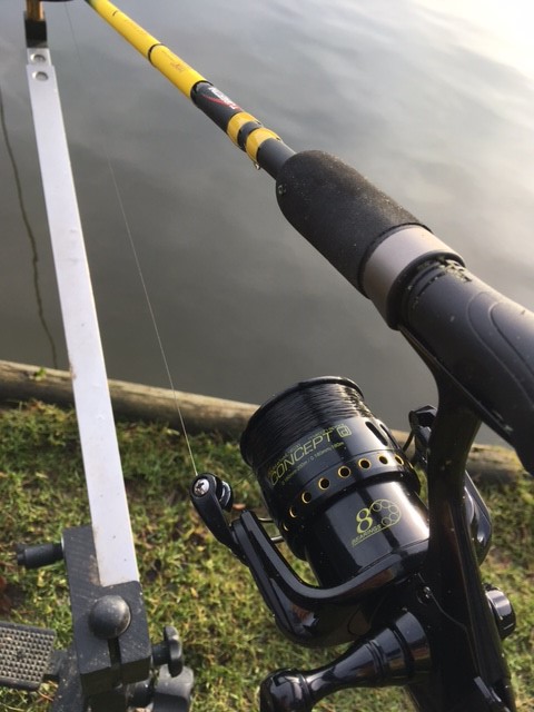 Aufgrund der aktuellen Temperaturen entscheiden wir uns vorsichtig zu Füttern und verwenden fürs Feedern eine Mischung 1 Teil Dark Mix und 1 Teil Competition Mix aus der Next Generation Serie. Bereits jetzt, nach den ersten Auswürfen mit der feinen Rute wird deutlich, dass sie nicht nur sehr präzise sondern vor allem äußerst feinfühlig zu händeln ist. Der Griff liegt sehr gut in der Hand und die Leichtigkeit der Rute macht das Auswerfen sehr angenehm. Nicht nur optisch, sondern auch vom Wurfverhalten her eine ganz tolle Rute, die sich beim Wurf sehr gut auflädt und den Korb ohne Kraftanstrengung in Richtung Angelplatz katapultiert. Als der Wurf durch den Schnurclip begrenzt wird, puffert die tolle Aktion der Rute den Schlag sauber ab und der Korb trifft möglichst leise auf die Wasseroberfläche.