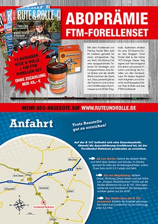 Die Besucher erwartet ein fantastisches Programm. Die Forellenprofis von Fishing Tackle Max bringen Sie zum Fisch und stehen Ihnen Rede und Antwort. Unsere Experten Lars Lindemann, Michael Kahlstadt, Marc Ziolkowski und Ivo Braakhuis sind auf ihrem Gebiet äußerst kompetent und gelten völlig zu Recht als die besten Forellenangler Deutschlands. Tatkräftige Unterstützung erhalten unsere FTM-Experten außerdem durch die Rute&Rolle-Redakteure, welche ebenfalls vor Ort sind.