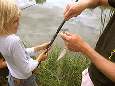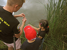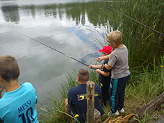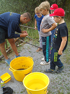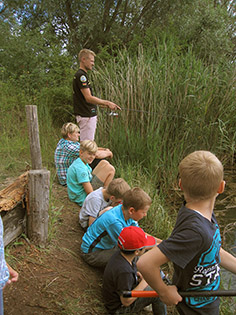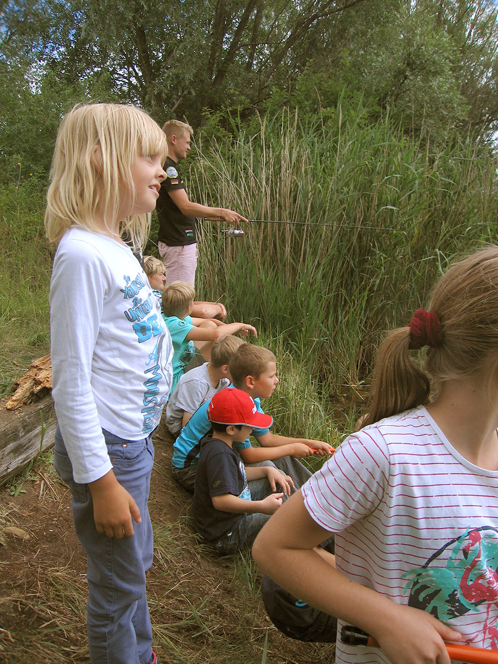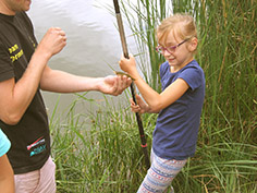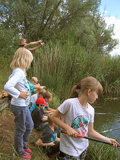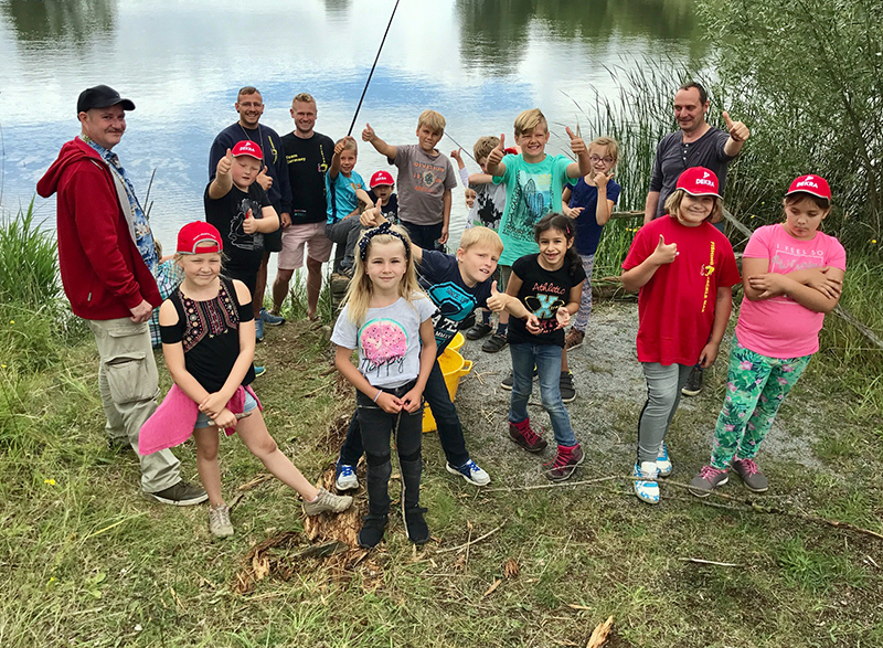 Aus diesem Grund bekamen 16 Kinder im Alter von 7 bis 11 Jahren aus dem Ferienhort Hadmersleben am Donnerstag die Gelegenheit, selbst mal eine Angel in die Hand zu nehmen und damit sogar einige Fische zu fangen. Unter fachkundiger Anleitung von unseren Mitarbeitern Max Hohlfelder und Johannes Böhm durften die Kids heute in der Sandgrube Hadmersleben mit der Stipprute auf Friedfische angeln. Das dafür notwendige Material, wie Gerät, Schnur, Futter und Lebendköder stellte Fishing Tackle Max selbstverständlich zur Verfügung. So konnten trotz verständlicher Aufregung und leichter Unruhe der angehenden Angler, einige Fische gefangen werden. Es handelte sich um Rotaugen und Rotfedern. Jedoch stand das Erlebnis ganz klar über dem Fangerfolg. Fishing Tackle Max bietet solche „Schnupperangeltage“ für die Hortkinder jedes Jahr an und wird es auch zukünftig gerne tun.