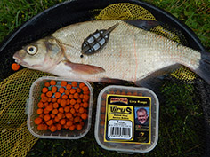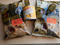 Feedern auf Brassen und kleinere Karpfen: Futter bestehend aus 60 Prozent Black Competition Mix Black und 40 Prozent Sweet Fishmehl Classic Feeder. Als Köder Mais oder Rotwurm bzw. beim Methodfeedern Betaine oder Brot Boilies.