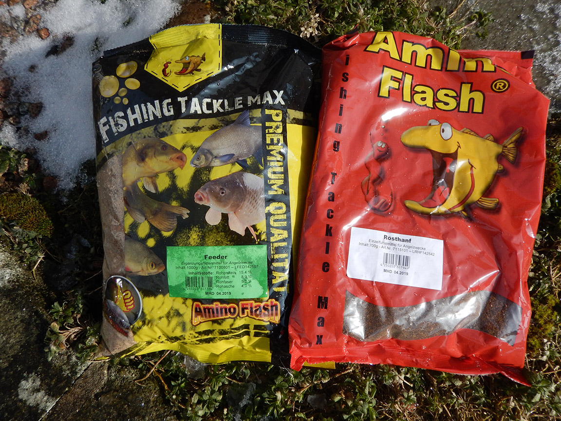 Futtermischung zum Feedern Rotaugen und Rotfedern: 80 Prozent Amino Flash Feeder und 20 Prozent Rösthanf. Auf ein Kilo Futter zusätzlich 100 Gramm gequollene Hanfkörner.