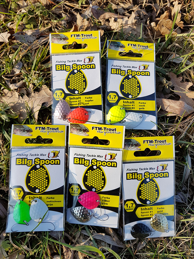 Kleine Blinker, auch Plättchen genannt, waren und werden immer ein fängiger Köder beim Forellenangeln sein. Jetzt gibt es sie "fangfertig" mit Haken: Unser neuer Bilg-Spoon ist da!