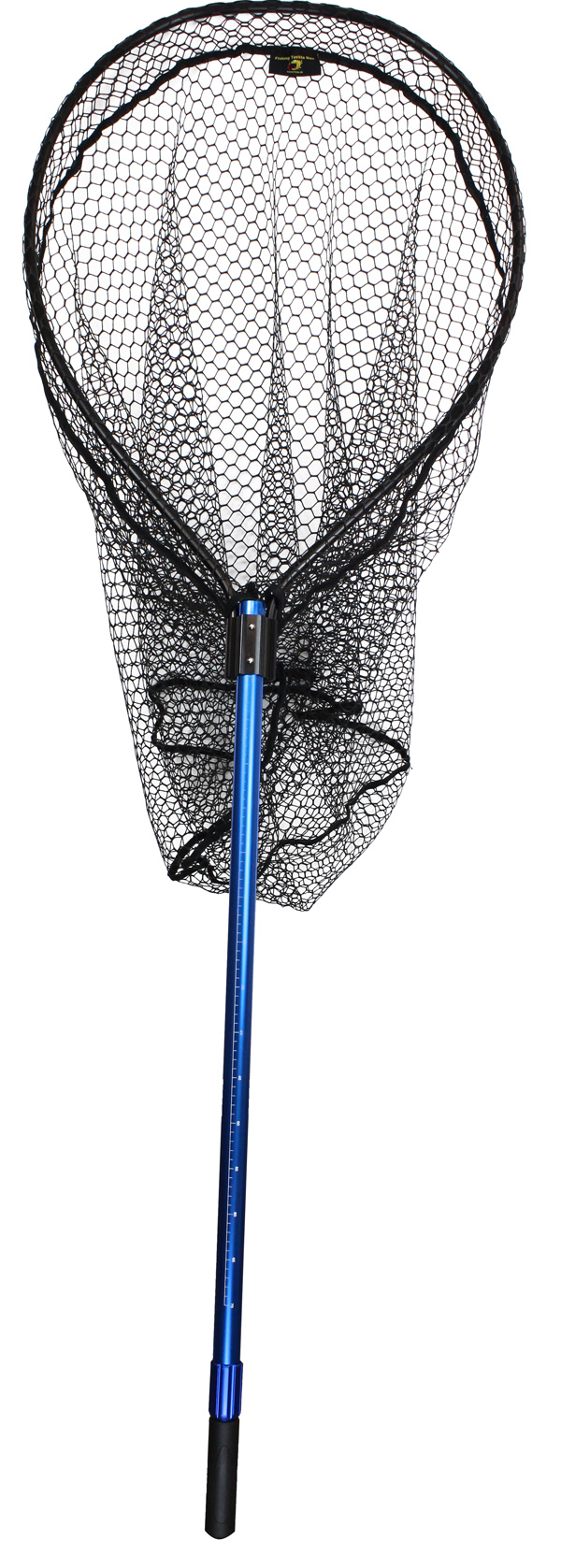 Der Kescherkopf ist 75 x 60 Zentimeter groß und besteht ebenfalls aus Aluminium. Er verfügt über ein gummiertes Netz, welches keine Gerüche aufnimmt, den Fisch schont und extrem schnell trocknet. Dank der extrem großen Netztiefe passen auch kapitale Räuber hinein. So konnten in der Testphase Hechte bis zu 121 Zentimeter problemlos mit dem Kescher gelandet werden. Eine echte Anschaffung für's Leben.