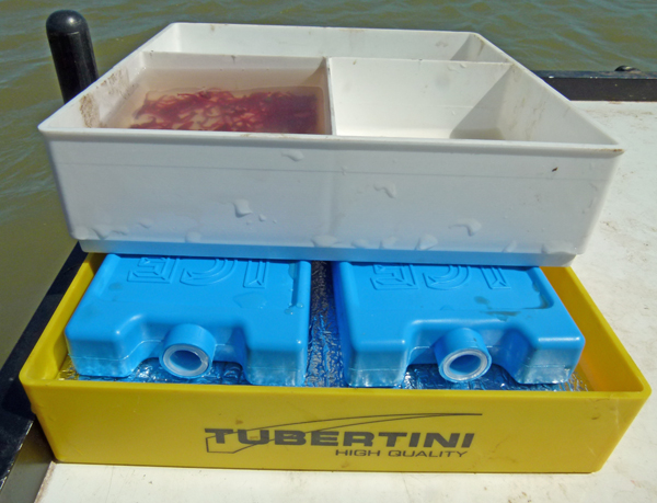 Der untere Teil der Dose ist speziell isoliert, so dass durch zwei Gefrierakkus nach obenhin Kälte abgegeben wird. Die Dose verschafft Ihren Lebendköder somit mehrere Stunden eine kühle Umgebung, auch bei starker Sonne.