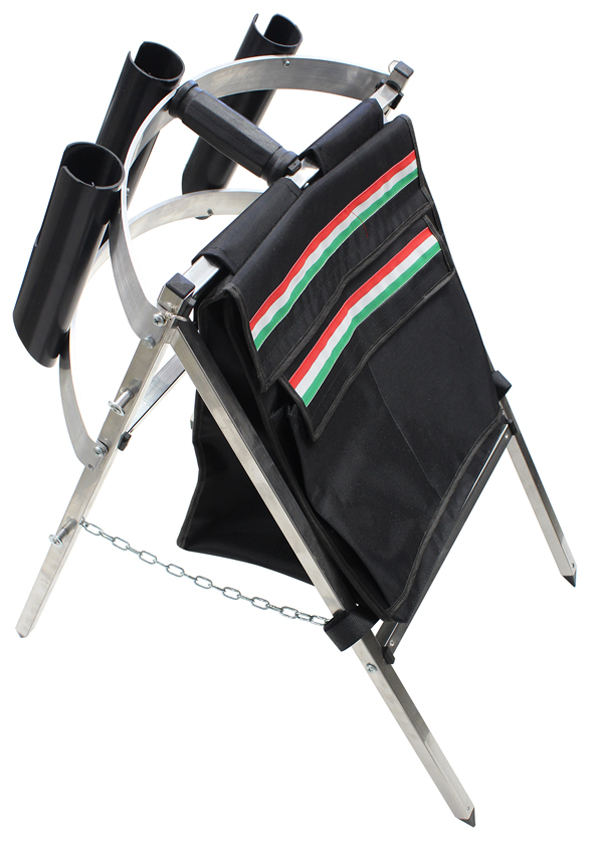 Der klappbare Rutenhalter ist stabil und standsicher. Die angebrachten Rutenhalter bieten Platz für bis zu drei montierte Ruten. Dazu gibt es Stauraum für allerlei Zubehör. Ideal für Angler, die mehrere Ruten aufgebaut haben und diese bei Nichtgebrauch sicher abstellen möchten. Zum Lieferumfang gehört eine Tasche, die zur Unterbringung von Köderboxen oder gefangenen Fischen verwendet werden kann. Ein Handgriff ermöglicht einen komfortablen Transport zum oder am Wasser.