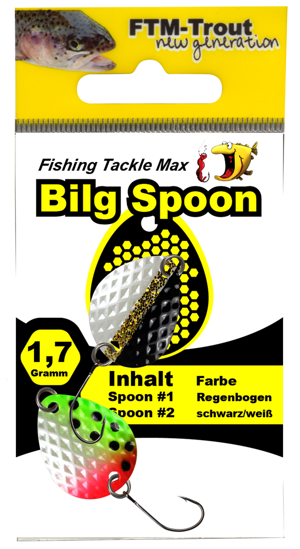 Die Bilg-Spoon ist aus einem besonders dünnen Material gefertigt. Dadurch arbeitet der 1,7 Gramm schwere und 2,3 Zentimeter lange Köder schon bei leichtestem Zug. Der Köder sorgt regelmäßig durch sensationelle Forellenfänge für Furore und ist gerade dann erfolgreich, wenn die Salmoniden sehr flach stehen.