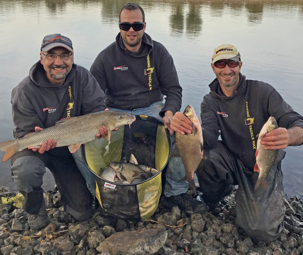 Wir verwendeten Posengewichte zwischen 20 und 40 Gramm, dazu Haken der Serie 26 in den Größen 14 bis 10 an 0,14 bis 0,18 Millimeter dicken Vorfächern. Als Köder kamen jeweils 3 bis 5 Maden zum Einsatz. Wir waren überrascht, wie schnell die Fische begannen zu beißen. Schon nach kurzer Zeit gingen uns gute Rotaugen an den Haken. Wir fingen Schlag auf Schlag. Nach einer Stunde gab es auch Brassen und Alande bis 2 Kilo. Zum Schluss fand sich ein Schwarm Barben auf unserem Futterplatz ein. Zum Glück hatten wir die FTM Carp Light Kopfruten im Einsatz. Diese meisterten die spannenden Barbendrills mit Bravour.