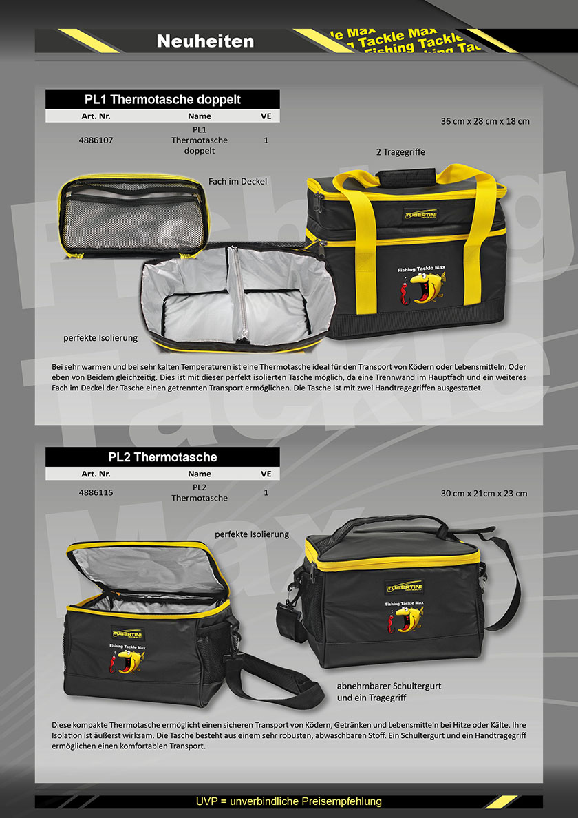 Bei sehr warmen oder bei sehr kalten Temperaturen, sind unsere neuen Thermotaschen ideal für den Transport von Ködern oder auch von Lebensmitteln.