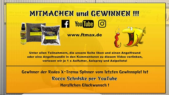 Auch diesmal habt ihr die Chance auf einen Gewinn. Unter allen Personen, die bei YouTube, Facebook oder Instagram einen Angelfreund oder eine Angelfreundin in einem Kommentar unter diesem Video erwähnen und die außerdem unseren Kanal abonniert haben, verlosen wir je 1 x Aalspray, Aalpellets und Aalfutter.