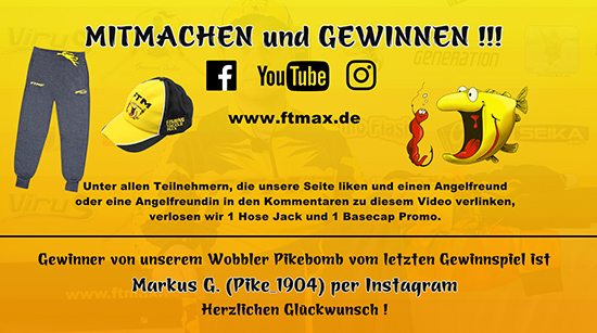 Auch diesmal habt ihr die Chance auf einen Gewinn. Unter allen Personen, die bei YouTube, Facebook oder Instagram einen Angelfreund oder eine Angelfreundin in einem Kommentar unter diesem Video erwähnen und die außerdem unseren Kanal abonniert haben, verlosen wir eine Hose Jack sowie ein Basecap Promo.