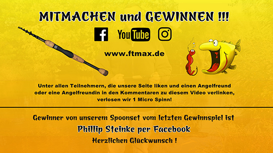 Auch diesmal habt ihr die Chance auf einen Gewinn. Unter allen Personen, die bei YouTube, Facebook oder Instagram einen Angelfreund oder eine Angelfreundin in einem Kommentar unter diesem Video erwähnen und die außerdem unseren Kanal abonniert haben, verlosen wir eine Micro Spinn Rute.