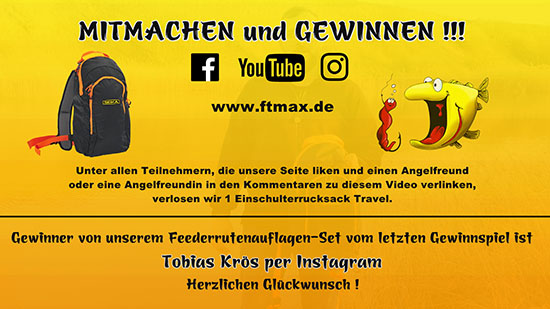 Auch diesmal habt ihr die Chance auf einen Gewinn. Unter allen Personen, die bei YouTube, Facebook oder Instagram einen Angelfreund oder eine Angelfreundin in einem Kommentar unter diesem Video erwähnen und die außerdem unseren Kanal abonniert haben, verlosen wir einen Einschulterrucksack Travel.