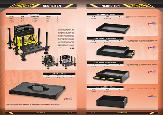 Unsere neue Sitzkiepe "Hexa" von Tubertini ist ein echtes Leichtgewicht. Die sechs Beine - von denen vier teleskopierbar sind - sorgen für einen sicheren Stand. Zusätzlich zur Sitzkiepe gibt es auch verschiedene Anbauteile, die sich perfekt miteinander kombinieren lassen. Ebenfalls aus dem Hause Tubertini gibt es 5 neue Spoons, die in verschiedenen Grammaturen erhältlich sind. Die hochwertige Stationärrolle "Redon" rundet das Programm ab.