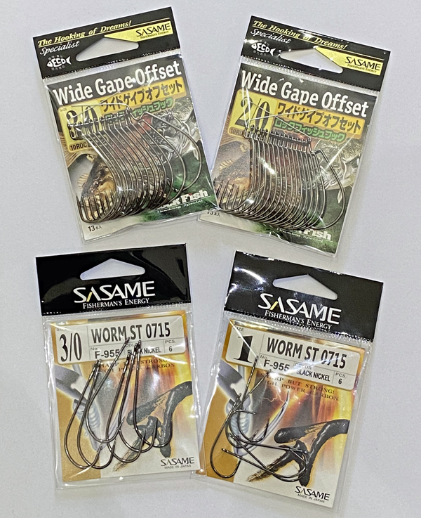 Die Haken gibt es in zwei Ausführungen, nämlich eine Offset- und eine Worm-Ausführung. Die Offset-Variante ist in 7 Größen (4 - 3/0) und das Worm-Format in 5 Größen (1 - 3/0) verfügbar.