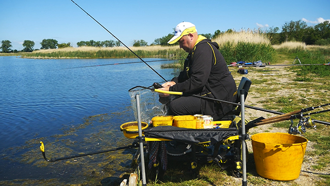 Neben dem speziell auf Schleien abgestimmten Futter von Fishing Tackle Max, hat PL auch Maiskörner und Maden mit dabei. Die Fische sind an diesem Tag besonders zögerlich und beißen nur dann, wenn sich gerade eine Wolke vor die Sonne geschoben hat.