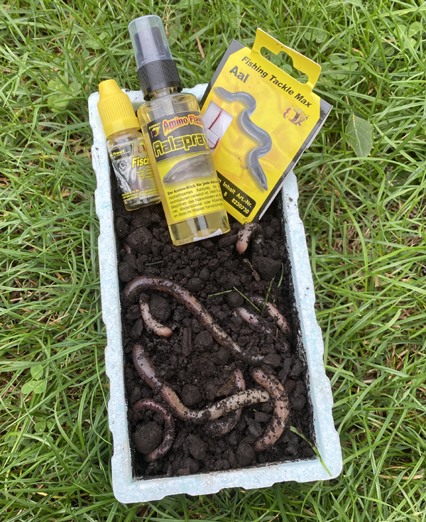Ein Tropfen auf den Köder reicht völlig aus, um diesen für die Aale besser wahrnehmbar zu machen. Apropos Köder: Hierbei kommt meist der gute, alte Tauwurm zum Einsatz.