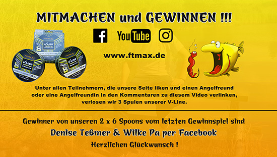 Auch diesmal habt ihr die Chance auf einen Gewinn. Unter allen Personen, die bei YouTube, Facebook oder Instagram einen Angelfreund oder eine Angelfreundin in einem Kommentar unter diesem Video erwähnen und die außerdem unseren Kanal abonniert haben, verlosen wir 3 Spulen der V-Line.