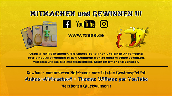 Auch diesmal habt ihr die Chance auf einen Gewinn. Unter allen Personen, die bei YouTube, Facebook oder Instagram einen Angelfreund oder eine Angelfreundin in einem Kommentar unter diesem Video erwähnen und die außerdem unseren Kanal abonniert haben, verlosen wir 1 Set aus Methodkorb, Method Former und Elastic Ring Spreizer.