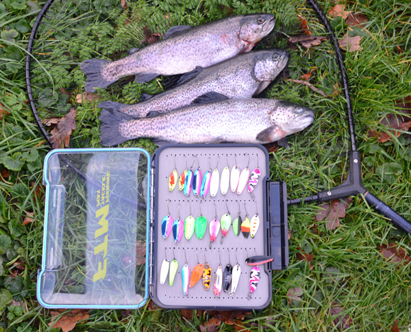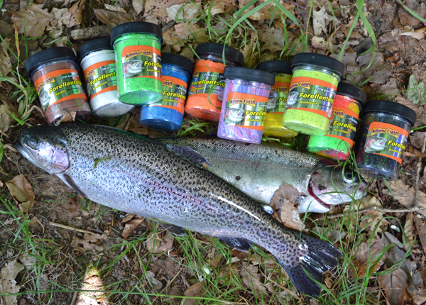 Ködertipps: Erste Wahl sind hier Bienenmaden, sowohl der FTM Standardmix als auch die Big Big, verschiedene Trout Finder Teige, sowohl für das passive als auch das aktive Angeln und natürlich die FTM Spoons.