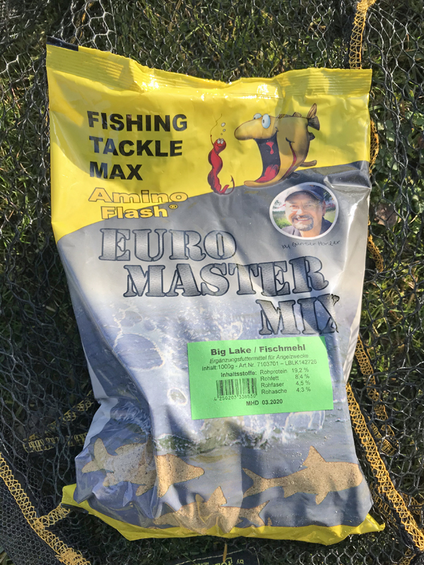 In flachen, schlammigen Seen, wo es viele Karpfen und Giebel gibt, hat sich beispielsweise eine Mischung aus je 50 % Euro Master Mix Big Lake Fischmehl und Euro Master Mix Sweet Lake bewährt, welcher ich noch etwas schwarze Futterfarbe beifüge.