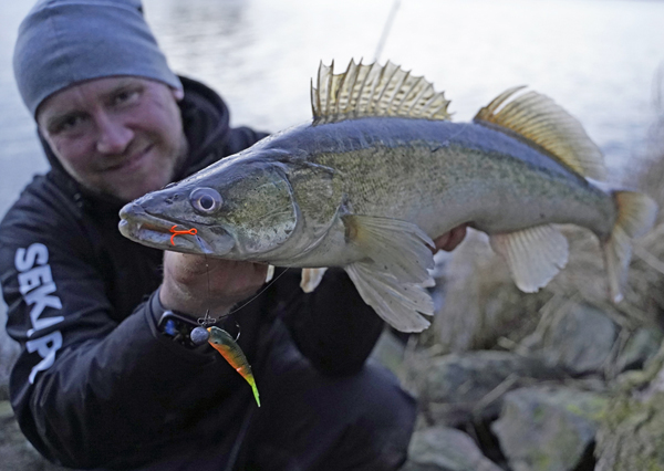 Gefangene Fische sind der beste Beweis, dass ein Produkt zum Angeln gut ist. Diesen Beweis haben die neuen Seika Pro UV-Drillinge schon mehrfach erbracht. Besonders in trüben Gewässern und in den Dämmerungsphasen haben mein Teamkollege Nick Härtling und ich bei verschiedenen Tests an unterschiedlichen Gewässern nämlich außergewöhnliche viele Bisse von Zandern und Hechten bekommen, wenn wir Gummiköder mit den UV-Drillingen als Stinger ausgerüstet hatten.