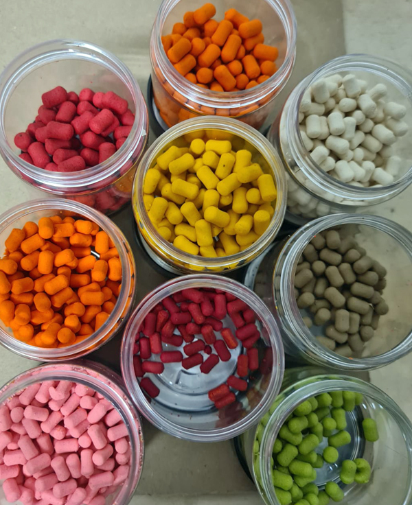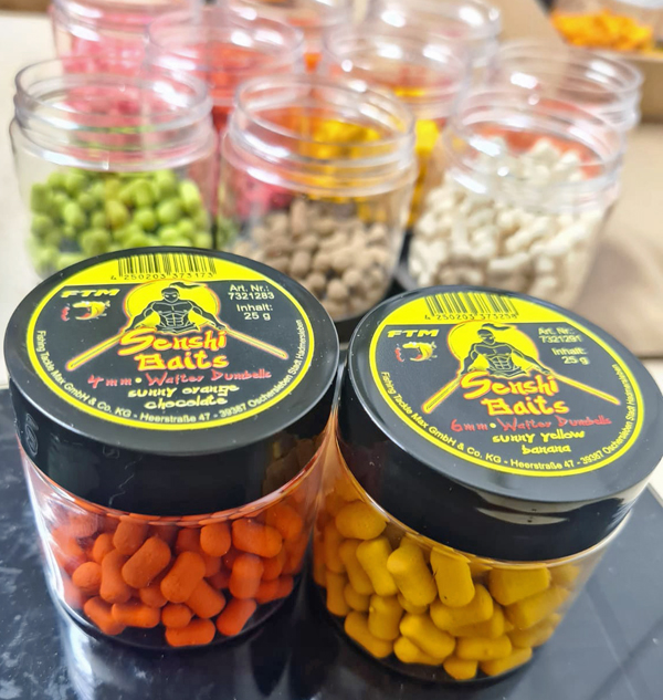 Die neuen 4 mm und 6 mm Wafter Dumbells gibt es in je 10 verschiedenen Farben und Geschmacksrichtungen. Somit kann man bei allen Situationen auf den richtigen Köder zurückgreifen.