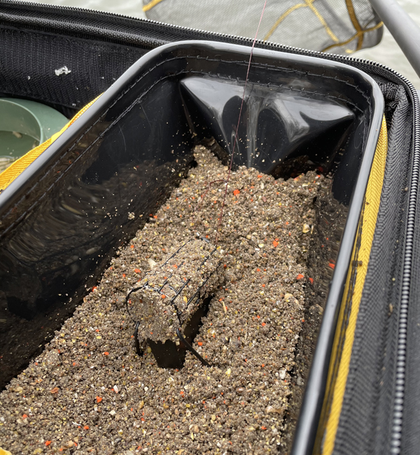 Die Box Evo 3 verwende ich besonders gerne dafür, mein fertiges Grundfutter von zu Hause aus zum Angelplatz zu transportieren. Ich feuchte mein Futter gerne bereits vor dem Angeln an. Beim Brassenangeln im Fluss tue ich das beispielsweise schon am Abend vor dem Angeln. In die Box passen gut 6 Liter Futter, was für einen längeren Ansitz absolut ausreichend ist. Die Evo 3 passt perfekt in die Tubertini-Feederbox, was uns oft den Transport eines zusätzlichen Futtereimers erspart.