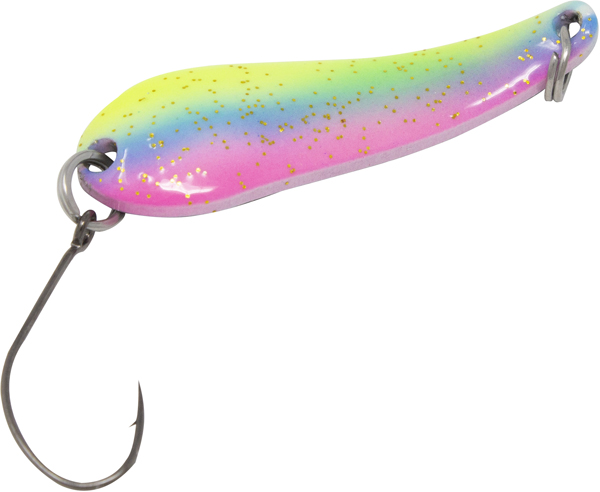 Der Name Bomb steht bei unserem neuen Spoon für bombastisch. Denn bombastisch ist dieser Forellenköder gleich in mehrfacher Hinsicht. Er fängt bombastisch gut, fliegt bombastisch weit und läuft bombastisch verführend. Ein Top-Köder, vor allem an großen oder stark beangelten Forellensee, wo die Salmoniden häufig weit draußen stehen. Der Bomb Spoon kommt dort dank eines Gewichts von 4 Gramm hin. Nicht nur sein Gewicht sondern auch seine Form begünstigen maximale Wurfweiten. Gleichzeitig sorgt die Form dieses Kunstköders auch für sein extrem aufreizendes Laufverhalten.