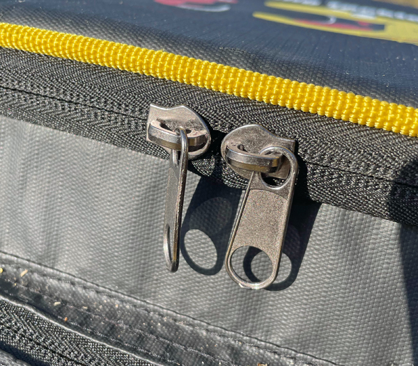 Das Hauptfach können Sie mittels zwei robusten und langlebigen Reißverschlüssen öffnen und wieder verschließen.
