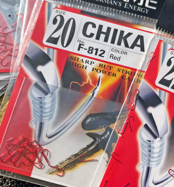 Außerdem sind die Haken im Vergleich zu ihrer Größe echte Leichtgewichte, was gerade beim Fischen mit Zuckmückenlarven und Castern eine wichtige Rolle spielt. FTM bietet den Chika F-810 und Chika F-812 red bewusst in den zwei Farben nickel und rot an, so dass man diese passend zum Köder wählen kann.
