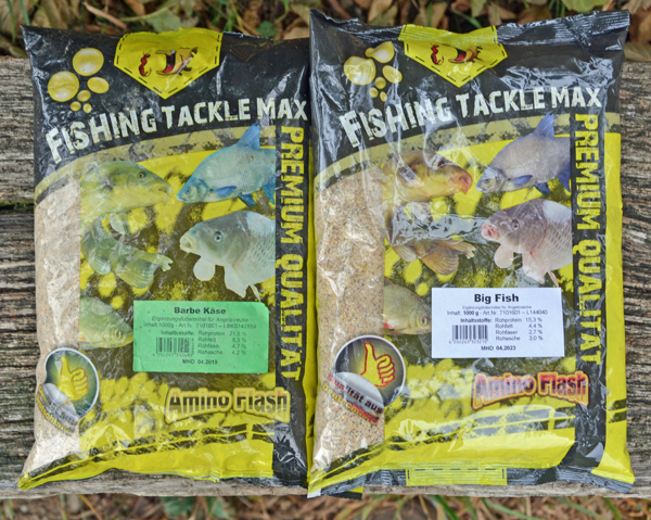 Hierfür bietet Fishing Tackle Max mit dem FTM Amino Flash Barbe, welches auf Käsebasis aufgebaut ist und dem FTM Amino Flash Big Fish zwei ideale Futtersorten, welche im Verhältnis eins zu eins gemixt werden können. Gerade der Käseduft des FTM Amino Flash Barbe wirkt oftmals auf die Bartelträger unwiderstehlich, aber auch die vielen farbigen Partikel im FTM Amino Flash Big Fish spielen ihre Reize aus.