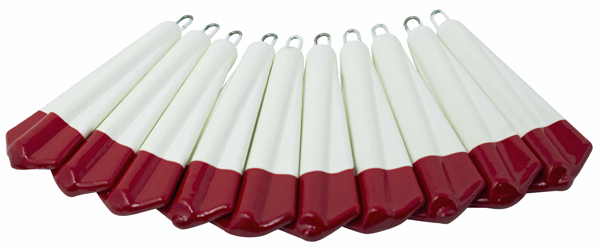 Unsere Heringsbleie dienen nicht nur dazu, Ihre Montage beim Heringsangeln in die Tiefe zu bringen. Sie sorgen gleichzeitig auch für bessere Fänge. Durch ihre spezielle Form und die auffällige rot-weiße Einfärbung üben die Bleie einen enormen Reiz auf die Heringe aus und taumeln im Wasser. So werden die begehrten Fische direkt zu Ihrer Montage gelockt.
