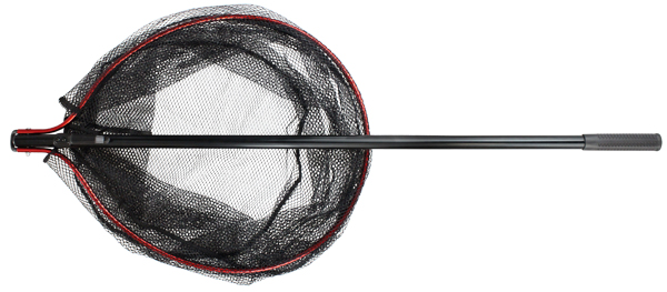 Die Landehilfe hat einen 40 x 50 cm großen Kescherkopf, ihr gummiertes Netz ist 50 cm tief mit einer Maschenweite von 5 x 6 mm.