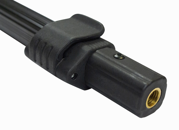 Der Kescherstab ist 200 cm lang und kann mit einem Maß von 110 cm transportiert werden. Die gewünschte Länge lässt sich stufenlos per Clip arretieren.