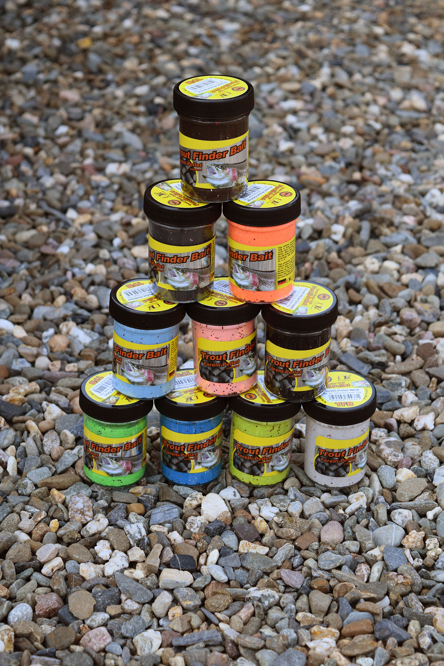 Nichts fressen Teichforellen lieber als Forelli-Pellets. Diese bietet FTM in Form eines äußerst fängigen Teiges an. Der Trout Finder Bait ist Garant für beste Fänge im Forellensee.